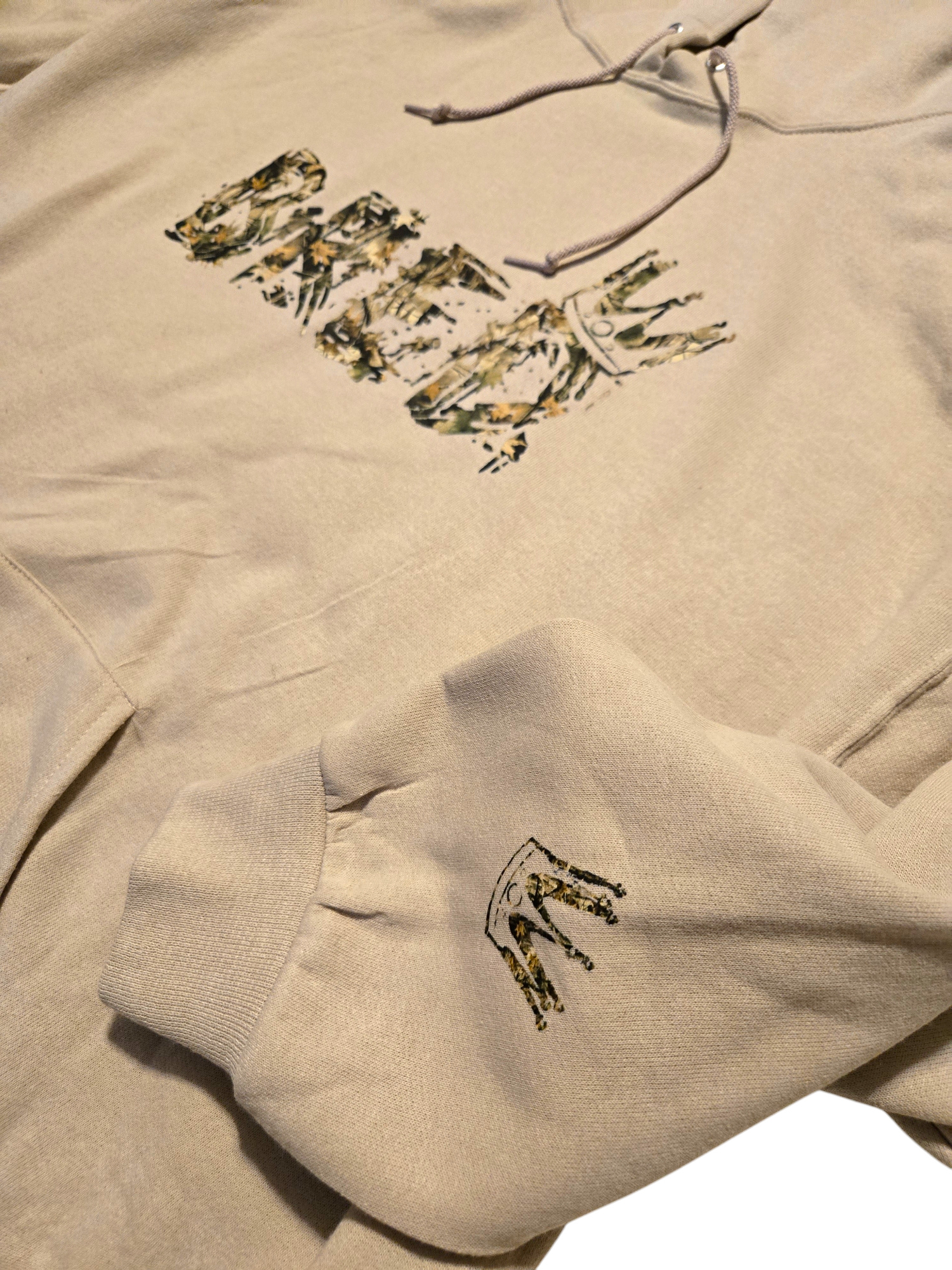 This soft comfortable, hoodie includes the Crowned Bred logo across the chest and the signature crown on the lower left sleeve. The logos have a tree camo print. 50% Polyester, 50% Cotton.